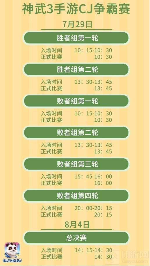 观看《神武3》手游CJ争霸赛,见证王者加冕巅峰时刻!8月4日,一路过关斩将的胜者组第一、败者组第一将在充满神武元素的线下总决赛战场胜利会师,为青春、为梦想、为荣誉而战,联手为全网玩家奉上最酣畅淋漓的巅峰回合竞技盛宴。除了精彩纷呈的白热化竞技决斗,《神武3》还为应援玩家准备了热辣宅舞秀、ShowGirl舞台秀等精彩节目以及专属称谓、精美伴手礼等重磅福利。