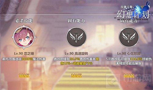 必杀技“恋之锤”不仅能造成大段伤害,泄能快也是爬塔所需要的关键的技能属性,在异世界回廊争分多秒的时候,相信她会给你很大的帮助,R3被动“高速旋转”初始增加10%普攻伤害,每级提升0.5%,满级54.5%,在增加普攻伤害的同时增加伤害减免。R5被动“心花怒放”五次普攻后获得一次技能伤害加持,初始提高25%,每级成长1%,满级114%。高百分比,高成长,弥补了大招倍率不足的问题。