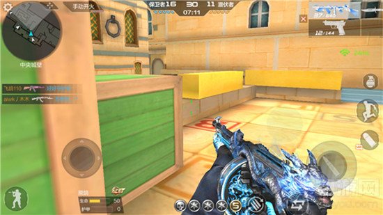 如图,这是地图中心的一个点位,由于城堡小门的掩护,对手若不细查或正面相对否则不可能发现小伙伴,这就为背身偷袭创造了良好的条件。注意,蹲点过程应尽量调配,切勿四处露头或走动,避免被对手察觉和针对。同时,得手后应选择撤离或前往其他位置,防止对手复活时专程报复!