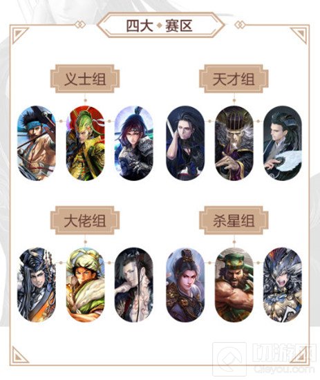为了方便大家进行同类型对比,多酷官方贴心的将三国人物分成大佬组、杀星组、义士组、天才组四大赛区。