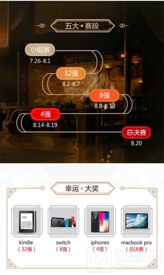 活动于7月26日正式开启小组赛,8月2日-8月7日32强产生,8月8日-8月13日8强诞生,8月14日-8月19日4强出炉,最终在8月20日迎来总决赛!