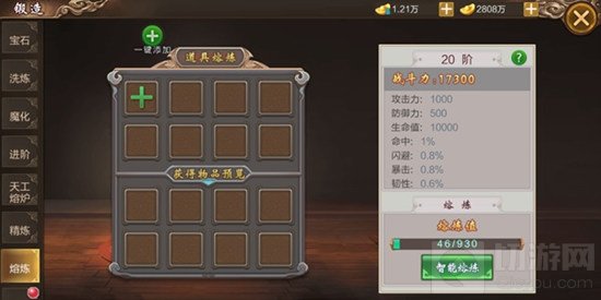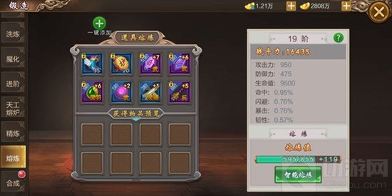 3、单击熔炼物品栏中的装备,熔炼后将获得对应熔炼值;让熔炼值满时,可获得永久属性加成。