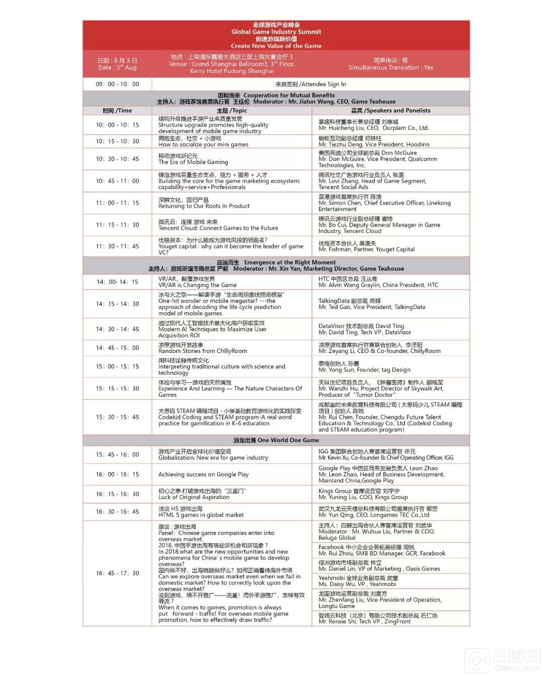 本届全球游戏产业峰会以“创造游戏新价值”为主题,将于2018年8月3日在上海浦东嘉里大酒店隆重召开,大会日程目前正式公布!(具体信息以大会现场为准)