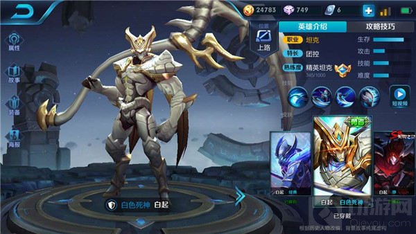 皮糙肉厚还拥有可观输出,是白起最大的特点。特别是在与敌方英雄单挑时,白起凭借攻击对手能降低其对自身的伤害这项被动效果,能真正做到无惧任何英雄。即使不滴对方,白起也能利用大招的位移效果轻松逃走。