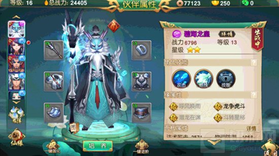 技能贵精不在多,虽然碧海龙皇没有被动技只有三个技能,但每一个技能都是超级伤害。绝技是一个单点伤害,这在副本PVE中没有优势,但是在PVP中优势就大了,可以说是专门为破敌方前排肉盾而存在,而且绝技施放后还会提高自身超高百分比伤害,这让他的普攻伤害同样可观,如果上阵再配合一个杨戬挂破胆状态,即使前排肉盾也有快速被秒的风险。此外,龙皇还有一项辅助技能提升我方攻击,如果赶上三大技能同时在状态下,20%+45%+30%,这还只是在技能没有升级的情况下哟!
