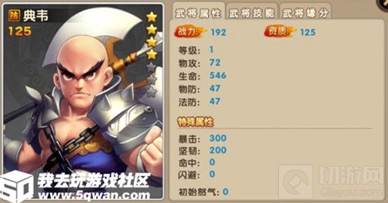 在游戏当中,典韦是4星的高星武将,可通过副本掉落和商店购买等途径获取。虽然形象不太讨喜,收集也困难,但是典韦确实是个不错的选择,如果玩家手中有这个角色,不妨多下点血培养,在后面关卡的挑战中会渐渐显露出他所具有的极大优势。