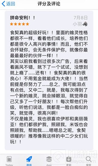 从玩家对游戏反馈的态度来看,《食之契约》确实是一款值得玩家试玩的手游。能获得苹果App Store编辑的推荐对于这款手游来说不仅是一种肯定,也意味着是个新的起点,朝着成熟化方向迈出全新的一步,相信这款游戏还将给玩家带来越来越多的惊喜。