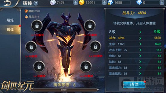 除了国战玩法,《创世纪元》还有着丰富的养成体系,玩家随着等级提升将逐步解锁宠装备、宠物、坐骑、骑士进阶、神器炼化、铸体、龙魂等玩法,且这些玩法也加入不少创新,比如宠物系统加入缘分玩法,通过收集低品阶宠物激活新宠物的特殊属性;又如坐骑系统,加上技能装备玩法,还有将多余装备熔炼成魔能进行铸体等,给玩家带来全新的游戏体验。