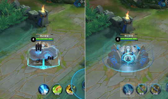 盾山和塔合二为一,期间并为防御塔提供大量的物理及法术防御并每秒修复防御塔部分生命值,合体将会持续一定的时间