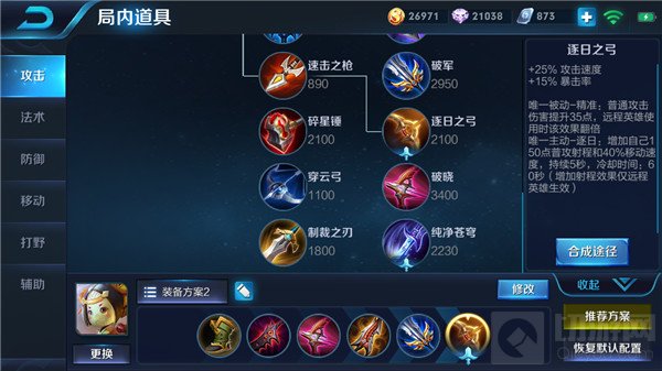 解析:影忍之足可以有效地防止鲁班七号遭到对面物理刺客英雄的骚扰,进而保证自己的生存能力。末世是鲁班七号的核心装备,鲁班七号的被动技能每攻击对手一次都能触发末世的被动效果,因此末世能够在根本上提高鲁班被动的伤害。破晓和无尽战刃是提高鲁班七号爆发伤害的重要装备,能够使鲁班七号的被动技能带有爆发性,进而给对面坦克英雄造成更大的打击力度。破军能够保证鲁班七号在后期能够爆发出足够的伤害,是强行提高鲁班后期伤害的重要装备。虽然鲁班七号的被动技能攻击范围较远,但鲁班七号在短期内只能依靠被动技能打出三次被动,技能全部进入冷却后鲁班七号只能依靠普通攻击触发被动,而逐日之弓的主动技能能够扩大鲁班七号的射程,进而使鲁班七号能够在更加安全的距离外打出被动。