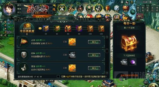 在完成每项活跃度任务时,可以获得主公经验和少量银币,但是在活跃度宝箱中,还有战功、粮食、威望、军令、金币等大量奖励。同时每日签到中也有各种好礼赠送,连续签到的时间越长,奖励也就越丰厚,签到中断便要重新再签,每一星期一个轮回。花费20金币还可以领取双倍的活跃度任务奖励哦!