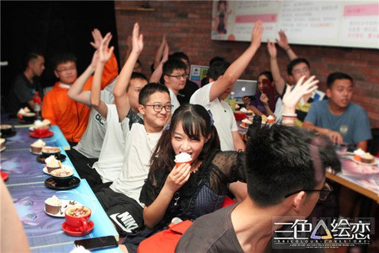 玩家们陆续到齐之后,本次活动也正式开始。第一个环节是大家一起参与趣味游戏互动,《三色绘恋》最吸引玩家的地方之一便是超S级精致立绘,官方为此特意准备了莫小菊的线稿,现场玩家可以亲自为CG线稿上色,涂上自己喜欢的颜色。