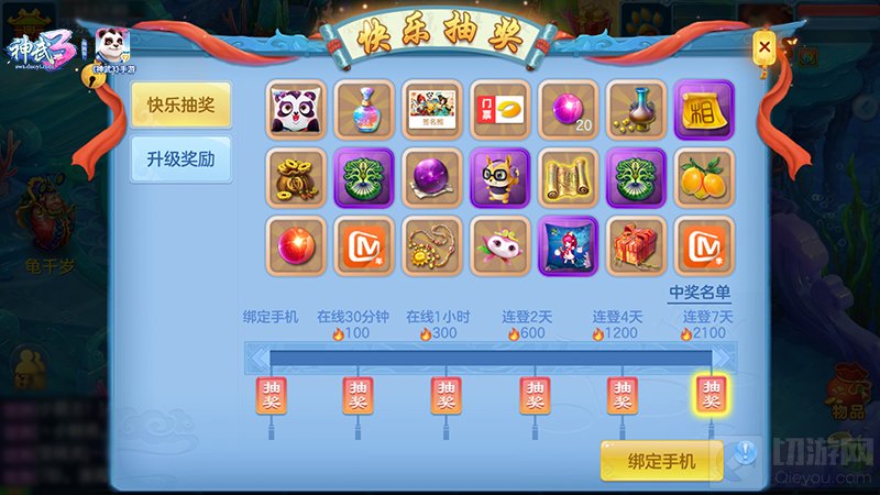 在《神武3》手游活动期间,新玩家创建的第一个角色可参与活动,达到15级并绑定手游后即可参与抽奖,即有机会获得湖南卫视综艺门票、湖南卫视主持人签名照、芒果TV会员等惊喜好礼,连续登录游戏完成日常任务获得活跃度后还可获得更多抽奖机会!
