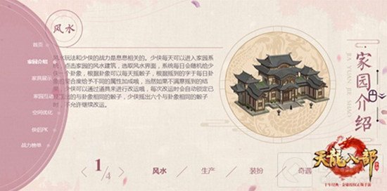 每日,家园主人都可以进入到家园系统,点击家园的风水建筑选取风水界面。系统会随机给少侠一个卦象,给予不同的属性加成。