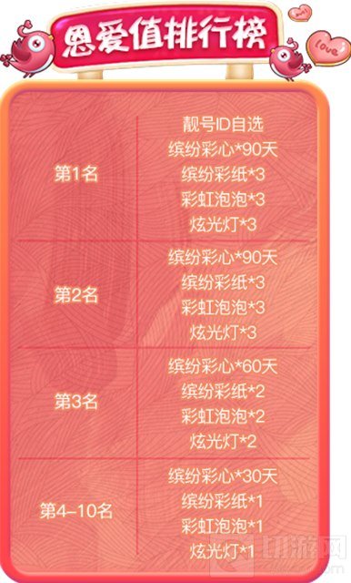 2. “恩爱值排行榜”奖励官网版与QQ空间及大厅、7K7K有所不同,具体奖励以游戏中为准。