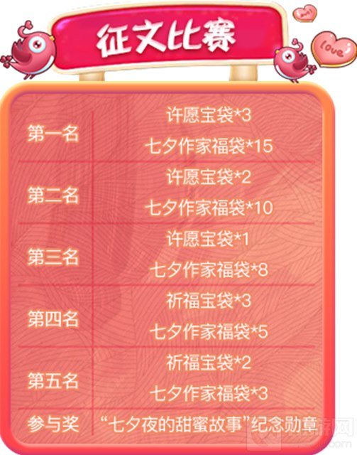 *所有上传符合要求的作品的小伙伴,都将能够获得参与奖——“七夕夜的甜蜜故事”永久纪念勋章!