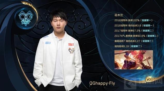 不仅仅只是有冠军杯中的高光时刻,Fly自进入联赛以来,他的花木兰在联盟中各项数据均在前列,2018冠军杯期间他的花木兰保持100%胜率,场均击杀3.8,均位列联盟第一。2017冠军杯胜率87.5%,2017KPL春季赛胜率90.9%,最高连胜7,场均击杀3.27,场均助攻6.18,均位列联盟第二!