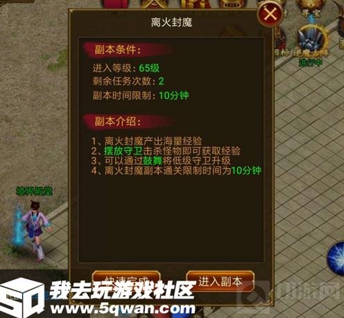 破天的离火封魔其实就是通过召唤守卫,来不停的抵御怪物的进攻,而怪物一共有九波,所以必须要怪物们的必经之路上放置守卫,值得注意的是,角色本身以及元神是无法参加战斗的,只有你的守卫可以攻击怪物。