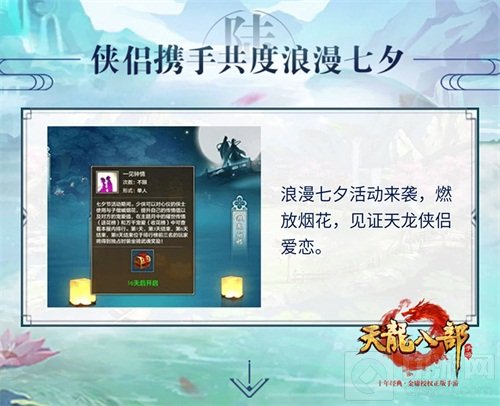 不仅如此,喜迎七夕佳节,《天龙八部手游》精心打造的浪漫七夕活动也在今日同步上线,与恋人携手完成任务燃放烟花,让璀璨星辰和漫天烟火一起,见证天龙侠侣最真挚的爱恋!