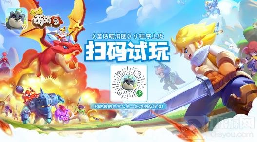 《童话萌消团》微信小程序火热上线,无需下载游戏即可一键体验刺激战斗三消玩法,微信扫一扫就能和强势逆袭的白雪公主一起并肩作战了!