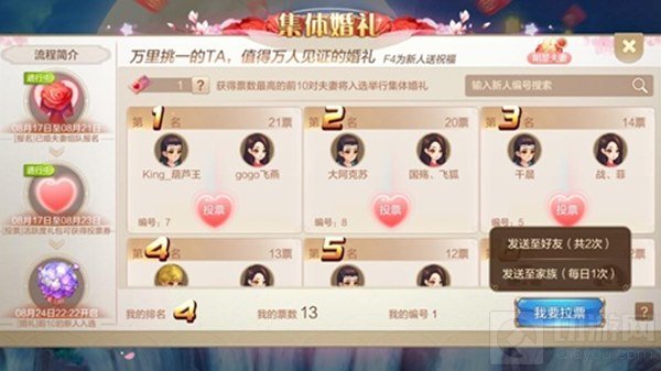 报名/投票方式:登录游戏——“集体婚礼”活动页面