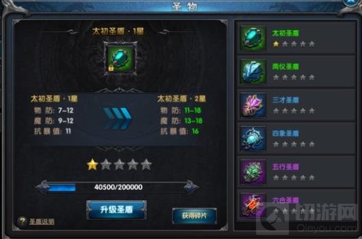 低等级的圣盾可通过消耗圣盾碎片进行升级,进阶为更高等级的圣盾。拥有高等级圣盾,再也不担心被别人一刀秒杀了。
