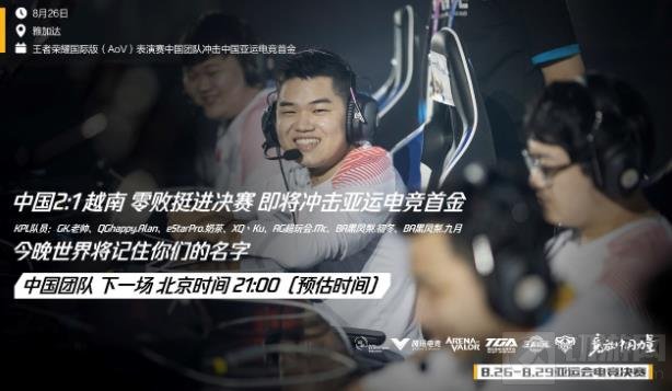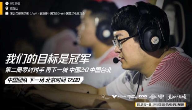 北京时间2018年8月26日,中国团队在2018年第18届雅加达-巨港亚运会上勇夺王者荣耀国际版(AoV)表演赛的金牌,这是亚运会历史上第一块属于电竞项目的金牌。赛后,亚洲电子体育联合会主席霍启刚先生、印尼亚组委副主席哈里先生、腾讯电竞业务负责人侯淼先生亲自为中国团队颁奖,五星红旗首次飘扬在了亚运会电竞项目的舞台上。