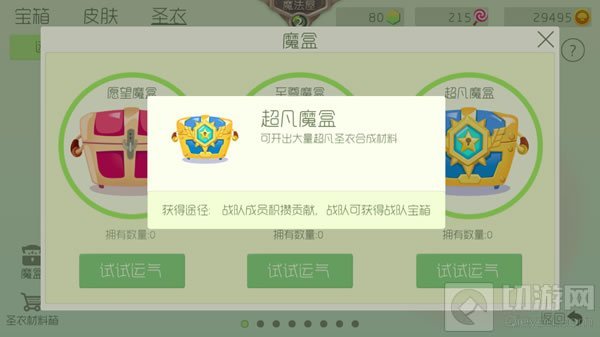 在大家充值会员之后,就可在圣衣界面的“魔盒”中看到自己所拥有的3个超凡魔盒哦,点击即可打开它。