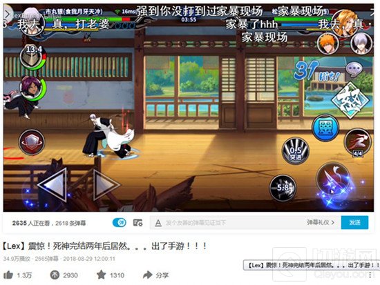 LexBurner拥有350万粉丝,是B站游戏区知名UP之一。他发布的《死神激斗》视频在短短数小时内,播放量就突破了30万。在视频中,LexBurner发挥一贯的“趣味吐槽”风格,为玩家讲解了《境界-死神激斗》手游的PVE玩法之后,话锋一转,向玩家介绍起《境界-死神激斗》中实时竞技的PVP道场玩法。