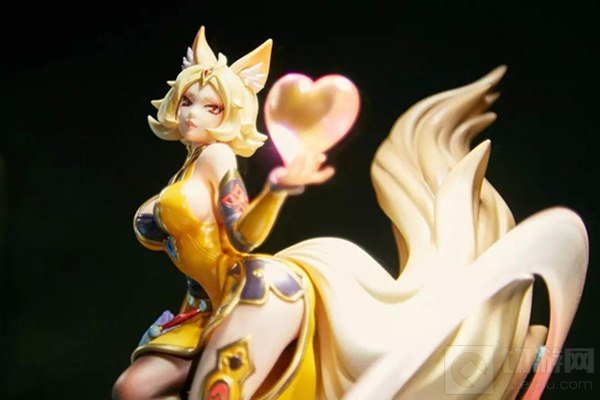 妲己雕塑的造型简直妩媚,凹凸有致的火辣身材,搭配手持爱心的可爱模样,真的让人目不转睛。