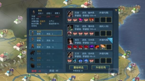 重点来了,和其他游戏最大的不同:势力的军队是其占有的城池共享的。无论任何一座城池被攻打,我方可出战的武将是一样的,省去了调兵遣将的麻烦,看似策略性变弱了,但事实上却可以让你的战术更加灵活。