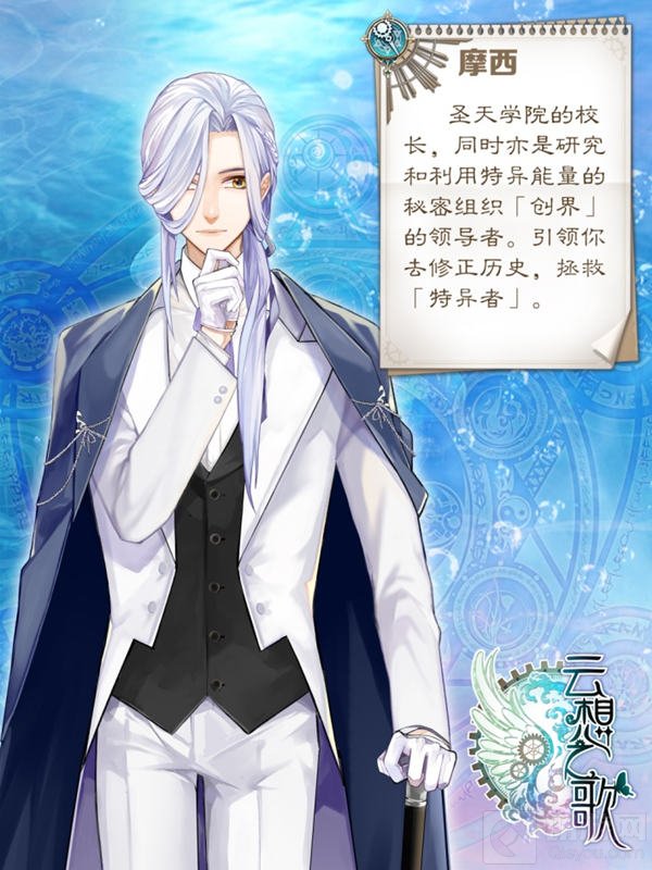 《云想之歌》的背景故事发生在一座囊括所有教育设施的都市“圣天学院”,其科技领先外界三十年以上,因此被称为“掌握着世界的过去和未来”。作为新生的玩家在入学第一天就被校长摩西选中,参与圣天学院对“特异能量”的研究。而游戏中的反派也在觊觎着“特异能量”,所以玩家必须帮助摩西利用时光机回到过去,寻找“特异者”,帮助他们成为对抗邪恶、平衡未来的力量!