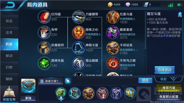 【魔女斗篷】:前面的出装基本都是物理防御加成,在中后期的时候法师英雄的伤害非常高,所以我们就要出魔女斗篷来提升法防,平衡双防。而且该装备的被动能让盾山在脱战后获得一个吸收法术伤害的护盾,这样在团战中即使面对敌方法师英雄,盾山也是无所畏惧。
