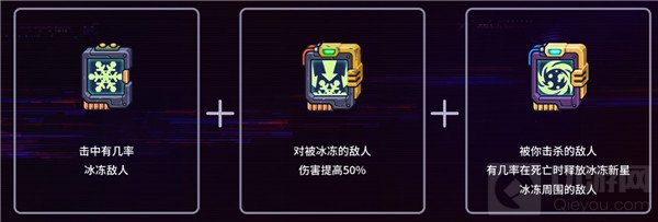 玩家可以通过击败敌人掉落/购买/探索获得芯片,在有限的槽位和资源下组合出特殊的效果。