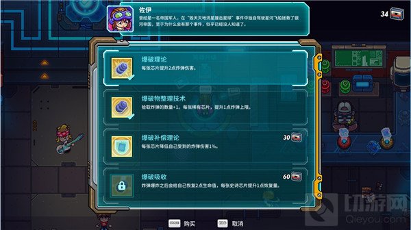 游戏提供不同的时空英雄,他们每个人都有自己独特的成长方向,不同于传统的 Rogue-like 游戏角色,元能失控中的英雄在肆意搜集元素获得成长之外,每个英雄还有自己额外的成长线路。
