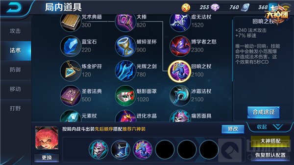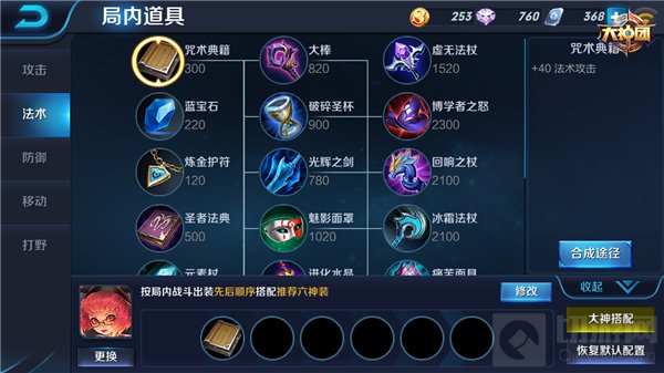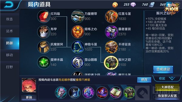 安琪拉在后期装备的选择很简单,伤害的增加以及对应局势所出的防御装。博学者之怒不用多说,对所有装备提供的法强的基础上再增加35%,得出来的数值想想都觉得恐怖。倒数第二件装备选择贤者之书的原因主要是为了提高安琪拉的生存能力,400点法术强度配合博学者之怒固然厉害,1400点的生命值增加才是王道啊,活着才是最好的输出。在防御装的选择,振兴之铠或者贤者的庇护都是视局势而定。一个是增加法术防御一个是增加物理防御,不过振兴之铠还提供10%的冷却缩减加成,这对于法师英雄也是次要需要的属性。