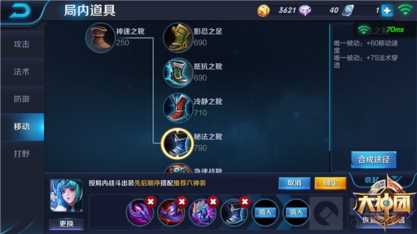 经过了开局的对线,王昭君开始出一些大件装备。为什么不出基础装备呢,因为王昭君的技能不是很耗蓝,而且在实际团战中可能控制敌人一到两次就可以为团队带来胜利,所以建议直接出法伤装备。比如时之预言,回响之杖和博学者之怒。时之预言由前期的进化水晶和大棒合成,增强法攻、法力和生命值,由于该装备是随时间累积法强和生命值,所以建议提前出。回响之杖提高王昭君的法攻和移速,使用技能还可以触发小范围的爆炸,提高了王昭君的法伤。博学者之怒提高王昭君的法术攻击和法术强度。王昭君的鞋子建议选择秘法之靴,提高移速和法术穿透能力,提高王昭君的输出。