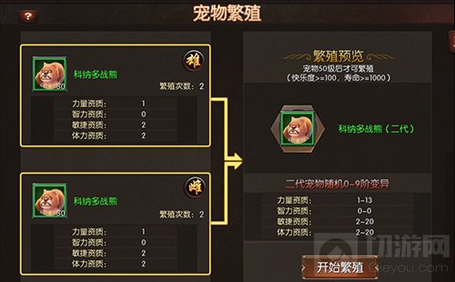 3、繁殖的宠物为一雌一雄的一代同种宠物,只有繁殖次数为2的宠物,才能进行第二次繁殖。