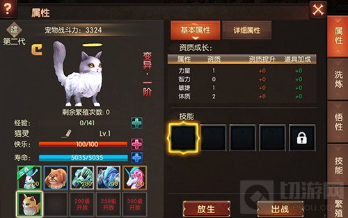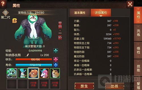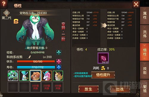 2、提升宠物的属性,包括力量资质、智力资质、敏捷资质和体力资质等,并提高角色的战斗力。