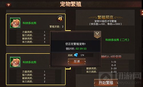 6、整个宠物繁殖的过程需要消耗3小时,消耗钻石可以加速繁殖的过程,仅需要1分钟即可完成繁殖。