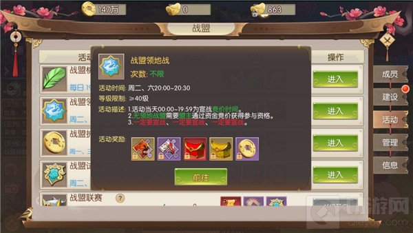 而战盟联赛则需要玩家以战盟的形式参与夺旗,战盟之间护卫对手展开夺旗战,夺旗数目最多、战力最强的三个战盟胜利后还可获得最强战盟称号。此外更有稀有战翼蝶恋花碎片、战盟贡献、战盟声望等丰富奖励,迫切想要提升战盟军衔的玩家不可错过。