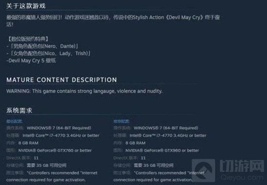 与此同时卡普空也公布了《鬼泣5》的系统配置要求,最低配置需要GTX 760+i7,可能不少朋友都得更新一下自己的配置才能畅玩《鬼泣5》了。