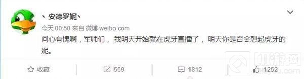 今日凌晨12点50分,斗鱼tv会长在微博上称愧对军师,以后在虎牙进行直播!
