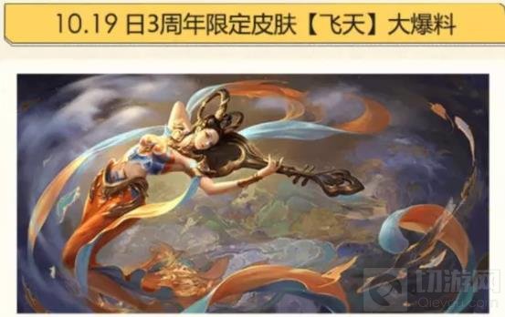 在三周年活动专区中,除了有三周年主题活动外,还有三周年飞天皮肤的爆料信息,官方预告将在10月19日公布飞天皮肤的全部细节,包括其皮肤特效和获取方式。