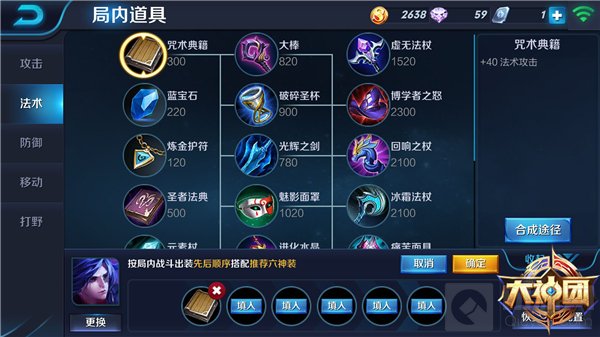 周瑜是一个消耗型法师,所以对于出门装我们首推咒术典籍,加强周瑜开局中单的对线能力,不断骚扰敌人,取得经济优势,有机会时方便我方刺客进行收割。但周瑜的技能比较耗蓝,再加上周瑜的一、二技能命中带引燃目标时造成晕眩,这就说明周瑜如果想多打出几次控制,就要尽可能多的释放技能。所以我们也可以出炼金护符,炼金护符是一件每秒回蓝的装备,可以提高周瑜的续航能力。