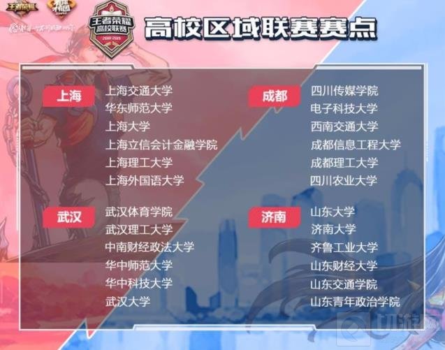 本次区域联赛一共开辟上海、成都、武汉、济南四大赛区,横跨大江南北,力图让每一个召唤师都能参与到新鲜、刺激的校园王者赛事中。摩登时尚的上海、轻松巴适的成都、敢为人先的武汉、古朴典雅的济南,个性迥异的赛区之间会摩擦出怎么样奇特的赛事火花呢?折冠王者之路,守卫高校荣耀,这风格多样的24座高校,你更看好谁呢?