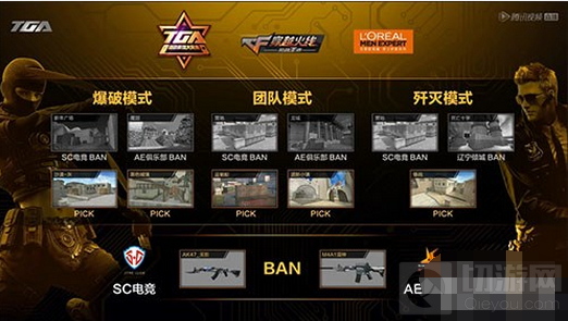 决赛采取BO5的赛制,首先,爆破模式SC电竞BAN掉新年广场,选择沙漠灰,AE俱乐部BAN掉鹰眼,选择黑色城镇;团队模式SC电竞BAN掉营地,选择运输船,AE俱乐部BAN掉龙城,选择波斯小镇;歼灭模式SC电竞BAN掉营地,AE俱乐部BAN掉死亡十字,最终选择巷战!枪械方面,SC电竞BAN掉AK47_无影,AE俱乐部BAN掉M4A1雷神。