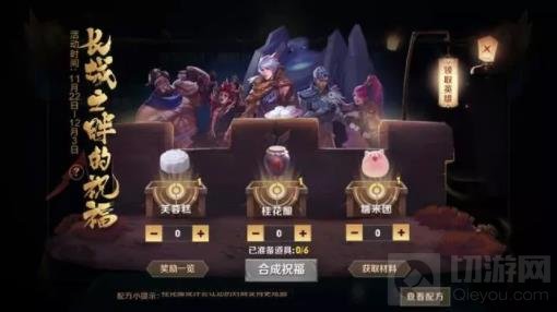 祝福活动涉及到一个配方的问题,也就是六种道具任意搭配,每种搭配抽到的主要奖励都不同。目前2+2+2的组合奖励以局内特效、守约祝福为主,大家如果知道其他配方的奖励,可以相互交流一下。