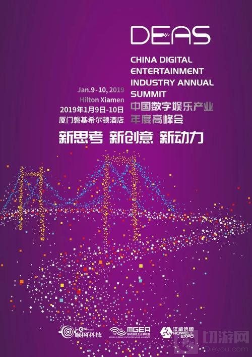 在厦门市人民政府指导下,第五届中国数字娱乐产业年度高峰会(DEAS)定于2019年1月9日至10日在厦门磐基希尔顿酒店举行。本届DEAS以“新思考 新创意 新动力”为主题,深刻剖析独具中国特色的政策环境、发展战略和总体思路,从多个维度全景呈现数字娱乐产业融合的诸多业态,并回望过去一年来产业快速发展的成果,进而预测未来一年数字娱乐产业发展的新方向,寻找下一个即将涌现的产业风口,促进我国数字娱乐产业健康、有序、快速发展。