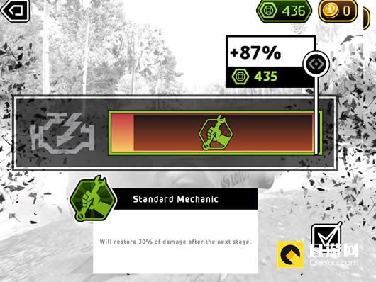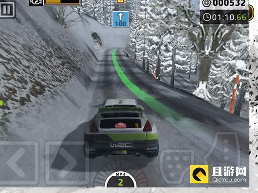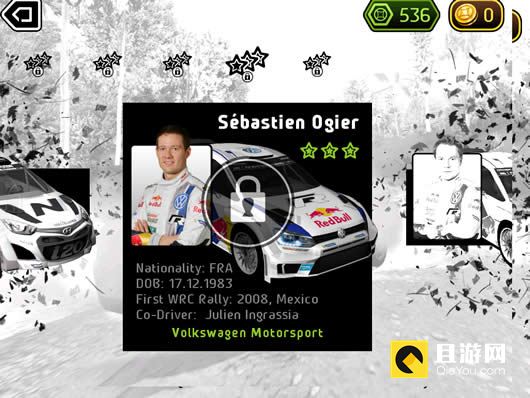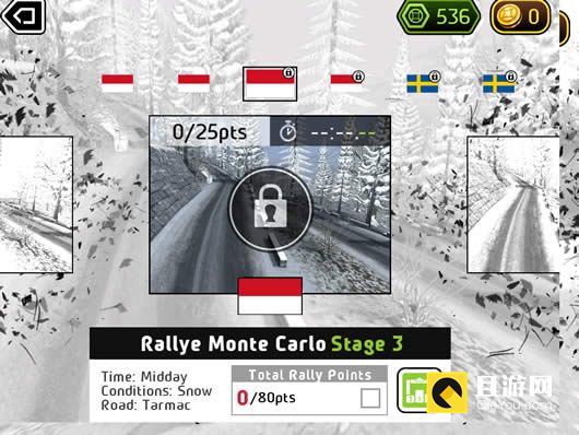 进入游戏第一感觉是音乐很fashion,很有动感。在主页面设计上,界面简洁明了一目了然。《世界拉力锦标赛》分为四种模式,赛季,快速比赛,特别模式以及日常竞速,日常模式比较特殊,其他三种模式则需要让玩家先选择自己喜欢的赛车和赛车手,不过这些都需要使用游戏里的货币来进行解锁,无奈小编只得先试玩日常模式了。好了,让我们赶快来进入第一个关卡感受速度吧。